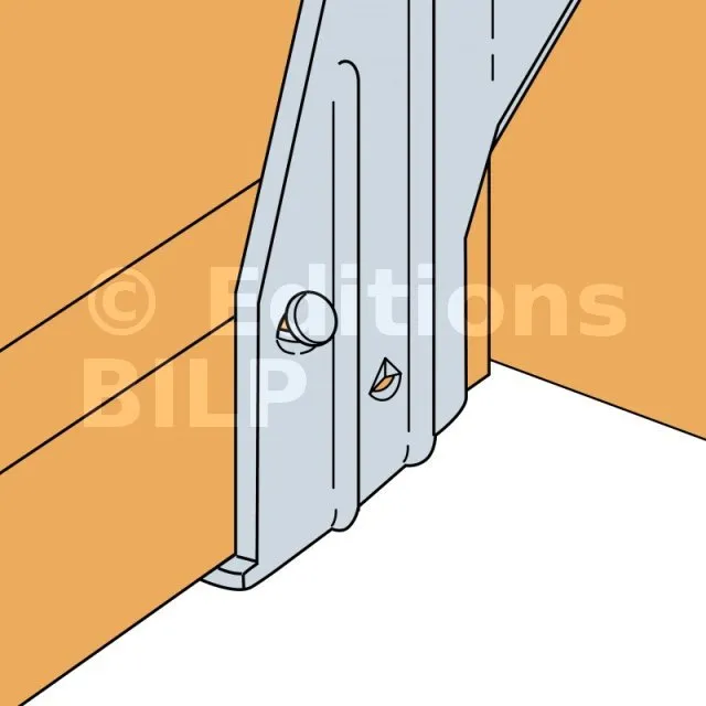 Pour reprendre des efforts au soulèvement, les pointes torsadées doivent être insérées dans les perçages inférieurs (insertion à 45° dans la membrure basse) et dans les perçages triangulaires (des renforts d’âme sont alors nécessaires).