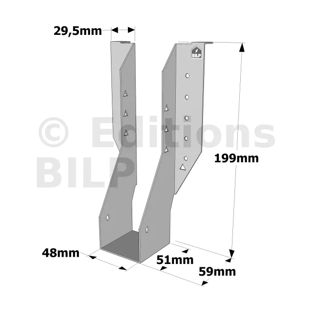 Les étriers à brides latérales IUSE garantissent une mise en œuvre facilitée grâce aux brides supérieures, tout en assurant un maintien de la membrure basse par forte adhérence. Le clouage s’effectue sur les brides latérales après un prépositionnement possible avec le "speed-prong".