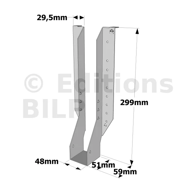 Les étriers à brides latérales IUSE garantissent une mise en œuvre facilitée grâce aux brides supérieures, tout en assurant un maintien de la membrure basse par forte adhérence. Le clouage s’effectue sur les brides latérales après un prépositionnement possible avec le "speed-prong".