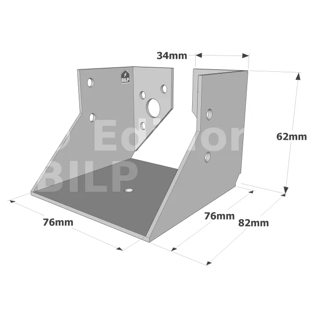 On admet une tolérance de 2 mm maximum entre l‘épaisseur du bois et la largeur du sabot. Exemple : un sabot plié à 76 mm peut porter une épaisseur de bois de 74 mm.