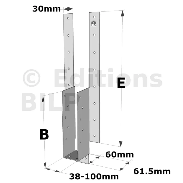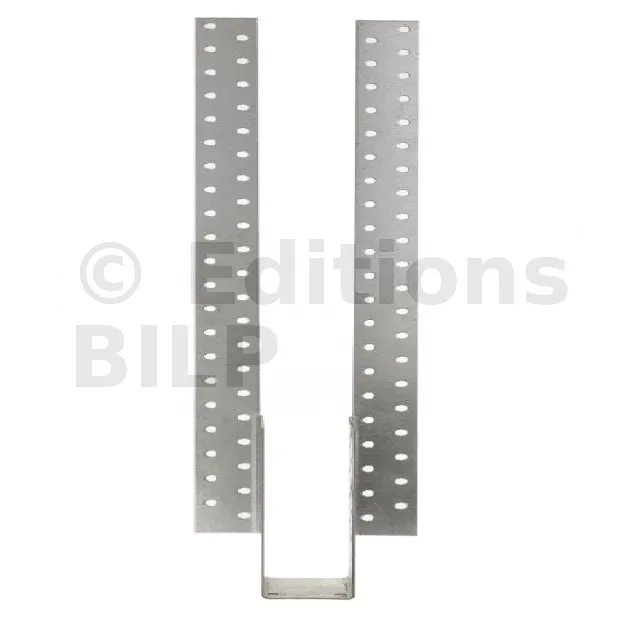 - Ailes pliées pour ajuster la hauteur du sabot par rapport à l’élément porteur. Clouer les ailes rabattues.