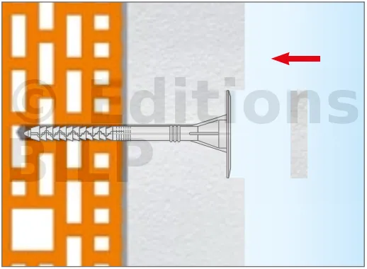 - Enfoncer le corps de la fixation de manière à ce que la rondelle de fixation soit orientée vers le matériau d’isolation thermique.