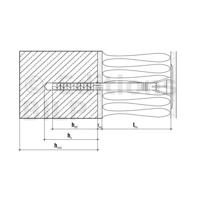 - Profondeur d’ancrage (hef)70mm