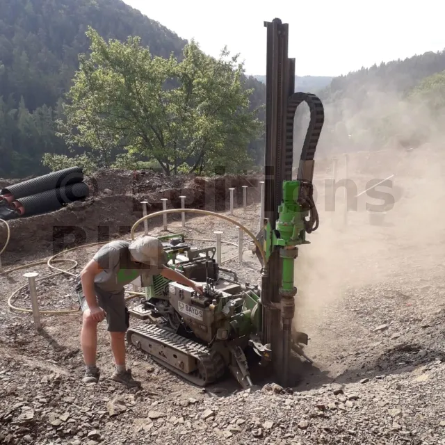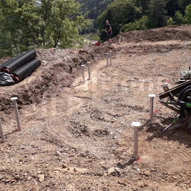 Pour les sols difficiles et complexes, nous utilisons des technologies additionnelles pour l’installation de pieux vissés, telles que le pré-perçage par compresseur HDT ou le carottage pour l’asphalte.