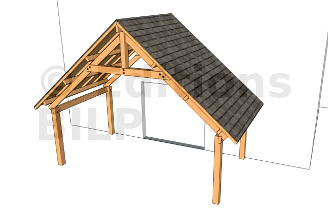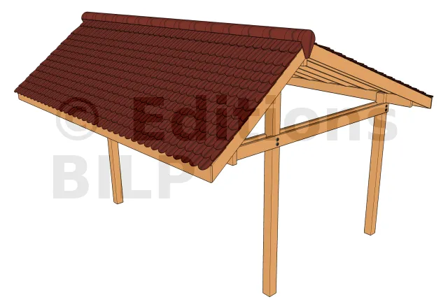 La charge à la panne faîtière est soutenue par une ferme pour le maintenir à la verticale pour les poteaux.