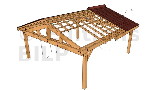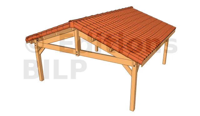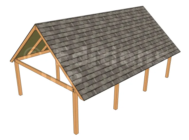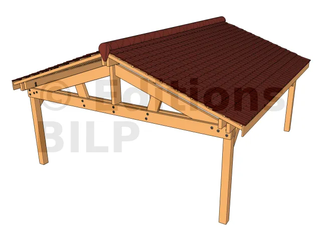 Pour le contreventement dans le sens de la profondeur du carport, il est assuré par les panneaux de la toiture.