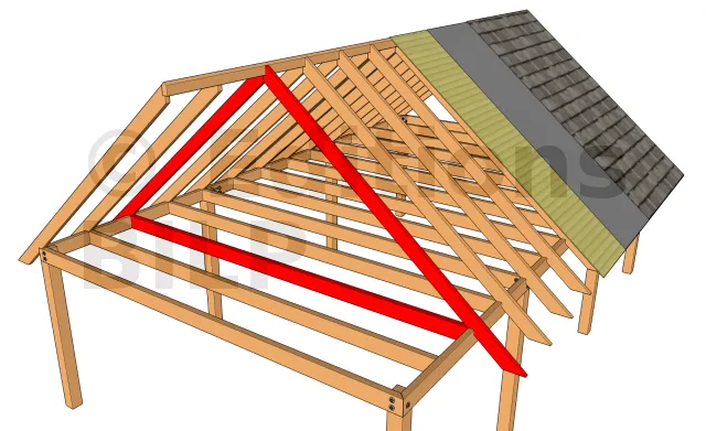 Les pannes intermédiaires déversées répartissent la charge sur toute la ferme. On peut s’en passer avec des chevrons plus importants comme dans le cas du chevron arbalétrier.