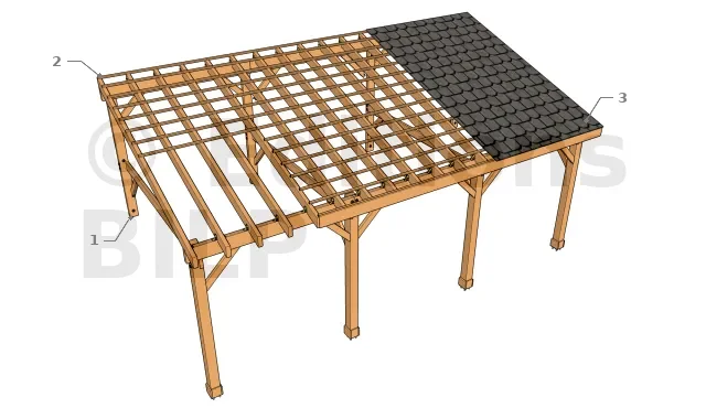Vue 3d Auvent KHALIL monopente avec couverture en ardoise - vue éclatée