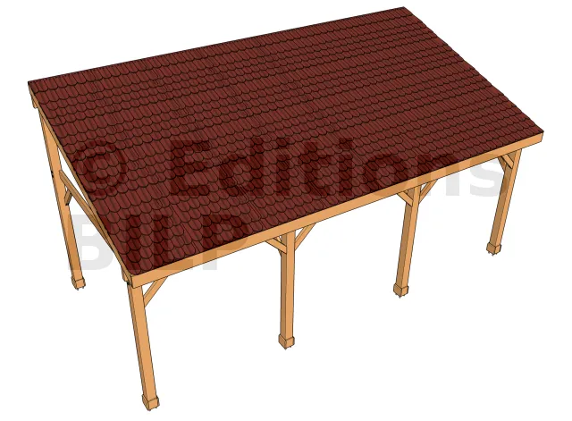 Vue 3dAuvent KHALIL monopente avec couverture en tuile plate - vue éclatée