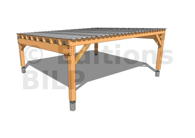 Avec sa structure assez simple, ce modèle de carport est à la fois abordable et facile à construire. Il est destiné à accueillir deux véhicules légers et non des fourguons, des camions ou des 4x4 avec porte-bagage.