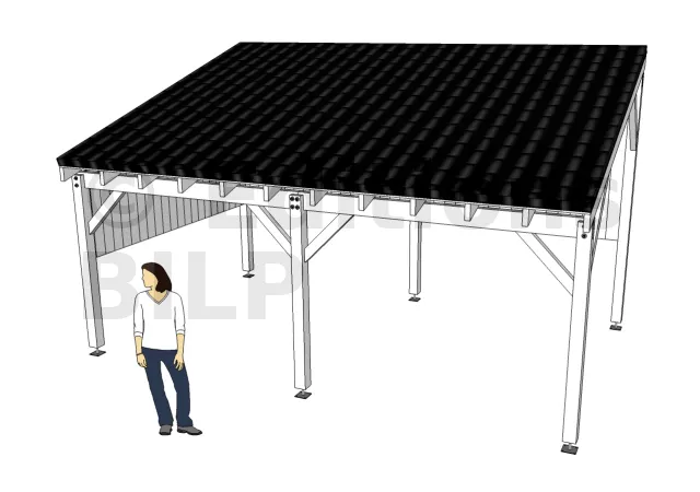 Pour un abris sûr, loin des pluies et contre les forts rayons de soleil, vous pouvez y abriter tout simplement les voitures, petit bateau, chariot, moto. Il peut aussi constituer un espace de stockage abrité, si vous ne possédez pas de cabane de rangement pour vos pots de jardin et outils. L’abri peut tout à fait faire office de chapiteau pour ceux qui aiment les déjeuners en plein air . Bref, ce modèle de carport pourra s’adapter à différents types de besoins et tenir à la fois le rôle d’un garage ou un lieu de rangement. A noter que le modèle présenté ici a une surface de 19 m².